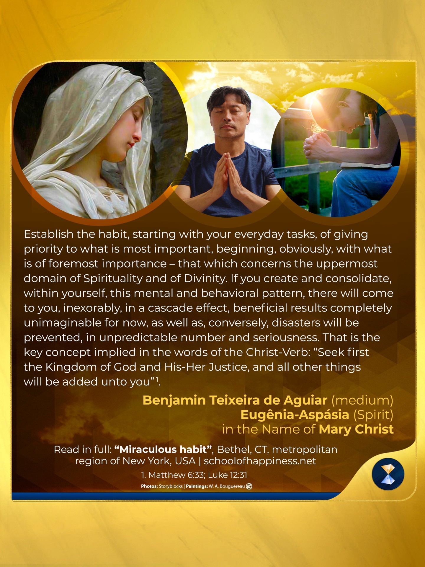 Establish the habit, starting with your everyday tasks, of giving priority to what is most important, beginning, obviously, with what is of foremost importance – that which concerns the uppermost domain of Spirituality and Divinity.