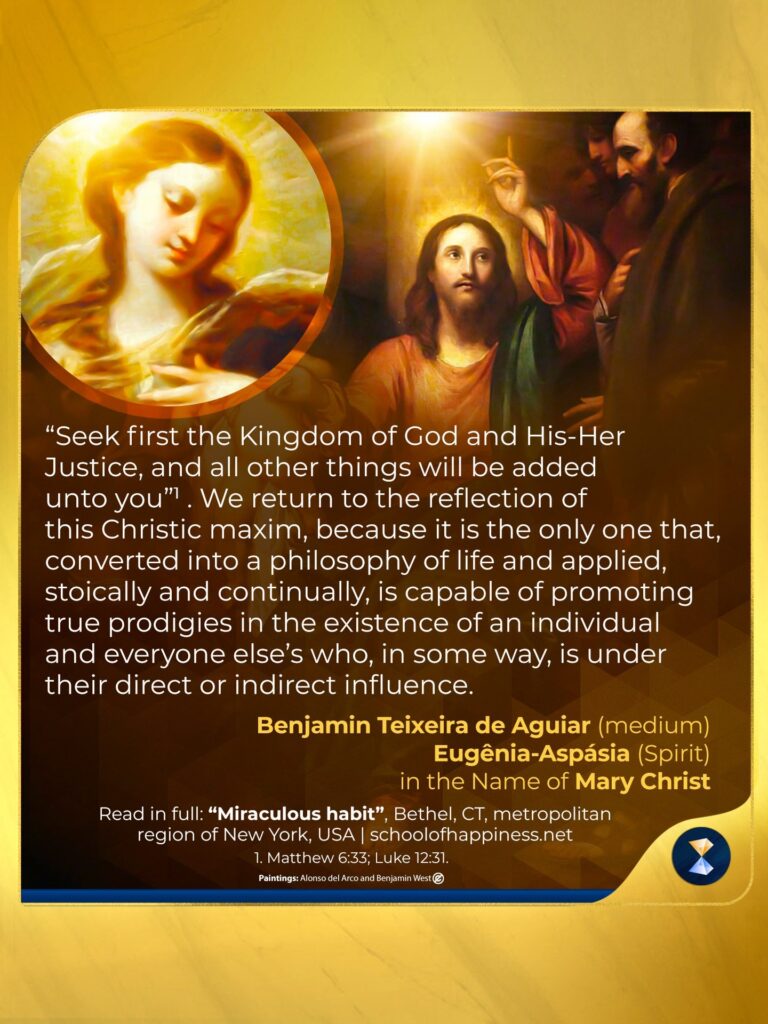 That is the key concept implied in the words of the Christ-Verb: “Seek first the Kingdom of God and His-Her Justice, and all other things will be added unto you” 1.