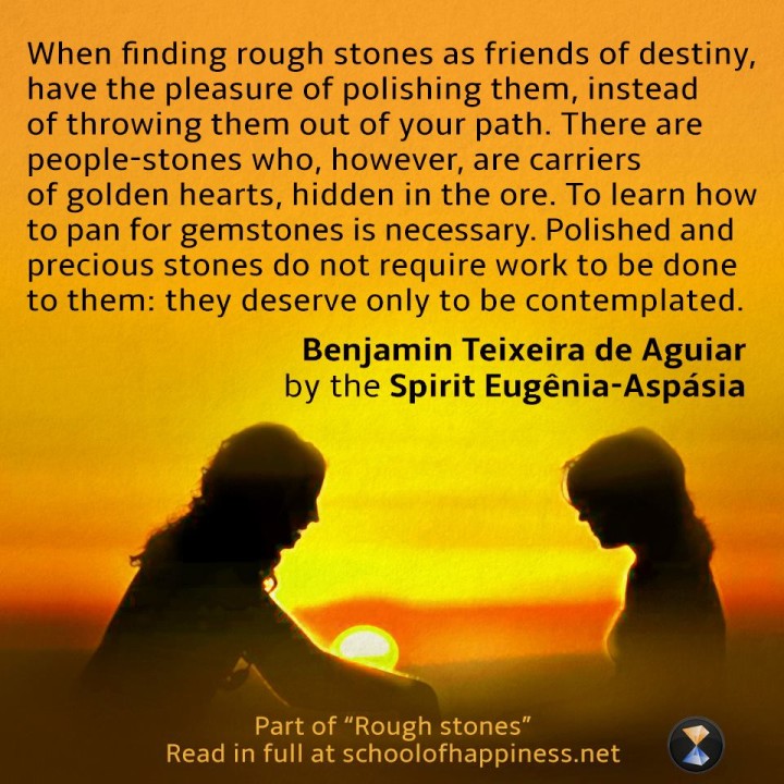When finding rough stones as friends of destiny, have the pleasure of polishing them, instead of throwing them out of your path. there are people-stones, who, however, are carriers of golden hearts, hidden in the ore. To learn how to pan for gemstones is necessary. Polished ande precious stones do not require work to be done to them: they deserve only to be contemplated.